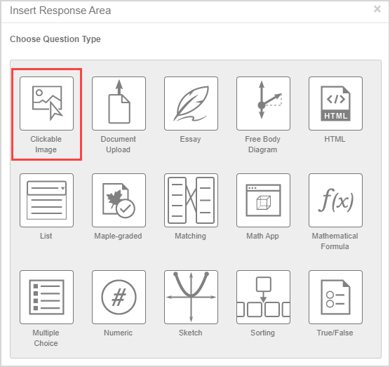Click Clickable Image from the list of student response components.