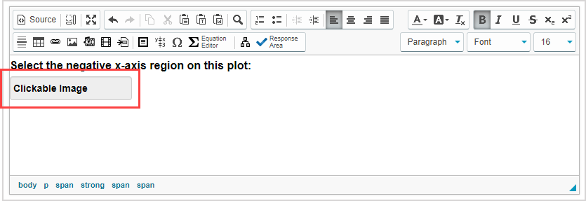 TIP: Check out Use the Visual Editor for details on how to use this toolbar to the fullest to control the visual appearance of your clickable image question text.