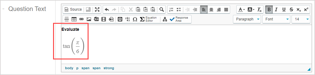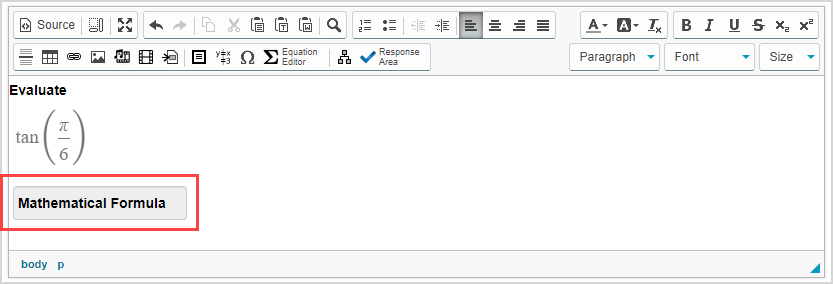 TIP: Check out Use the Visual Editor for details on how to use this toolbar to the fullest to control the visual appearance of your mathematical formula question statement.