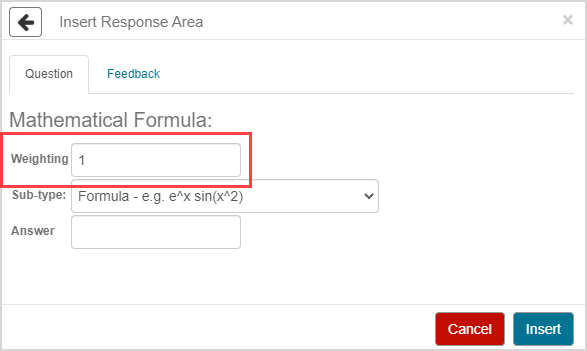 TIP: The weight of the component can be any integer greater than 0, and is calculated proportionate to the total of all weights across the question. Example — A question with two components could have the first weighted as 2, and the second weighted as 4. This means that the second component will be worth twice as much as the first when calculating the total grade for the question.
