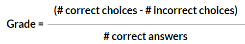 Multiple choice questions that are authored with a set of correct answers permit partial grading using the following calculation: