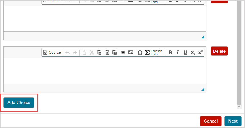 TIP: A multiple choice question starts with three answer choice rows by default. Your question must include at least two answer choices. You can click Add Choice as many times as needed to add more rows of answer choices.