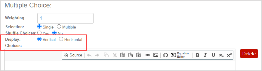 - Vertical — The answer choices are listed as a vertical list (selected by default).
