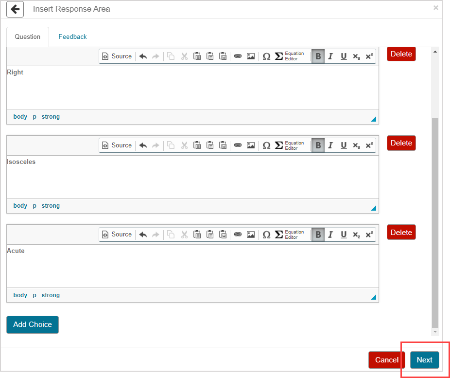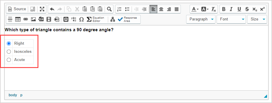 TIP: Check out Use the Visual Editor for details on how to use this toolbar to the fullest to control the visual appearance of your answer choices.