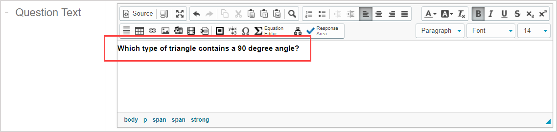 TIP: Check out Use the Visual Editor for details on how to use this toolbar to the fullest to control the visual appearance of your response specific feedback.