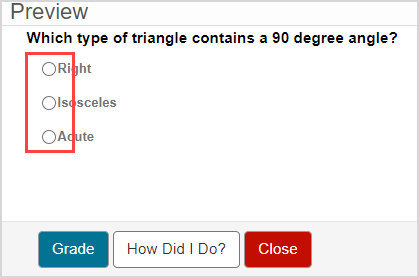 TIP: You can include an algorithm in your multiple choice question! Check out Author an algorithmic question.