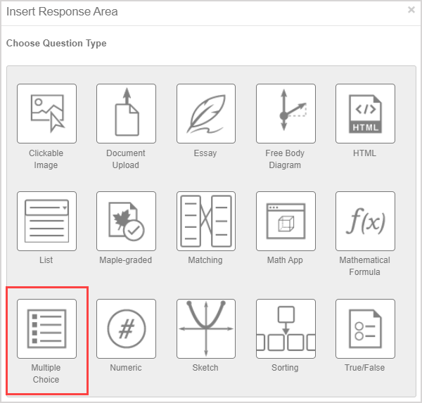 A multiple choice question presents a list of correct and incorrect answers that a student can choose from as their response.