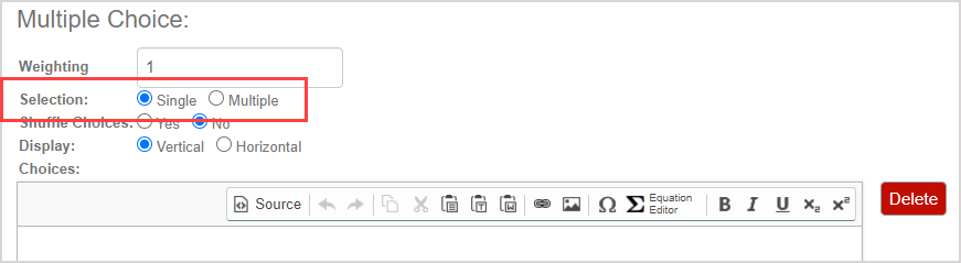 TIP: Selecting Single will display radio button options for your answer choices implying that only one answer can be selected by the student.