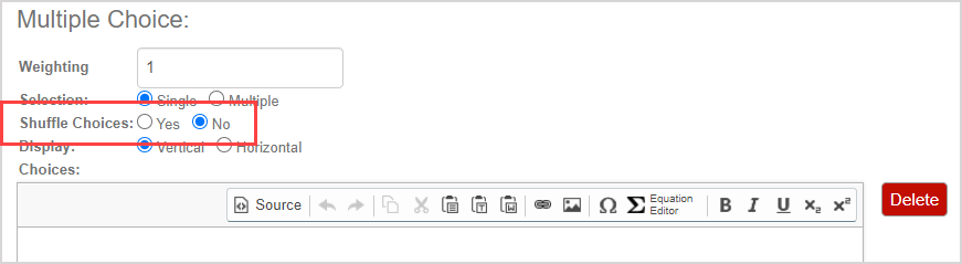 Select how you want the order of answer choices to be displayed in the question using the Shuffle Choices field: