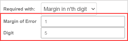| The student's response must be within +/- (inclusive) of the value defined in the Margin of Error field at the significant digit specified in the Digit field.