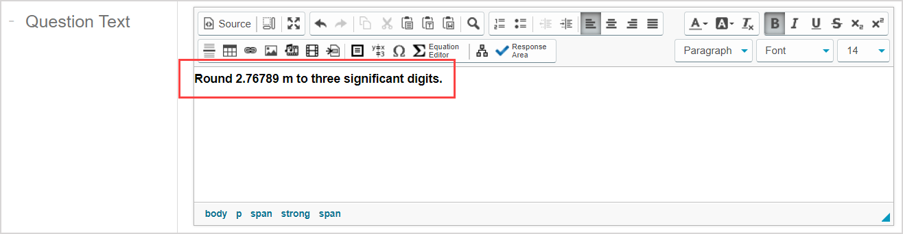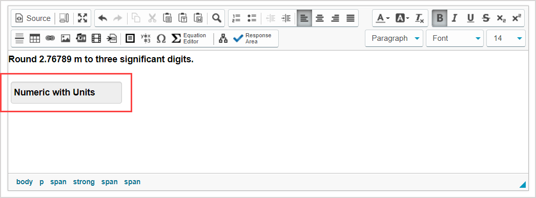 TIP: Check out Use the Visual Editor for details on how to use this toolbar to the fullest to control the visual appearance of your numeric question text.