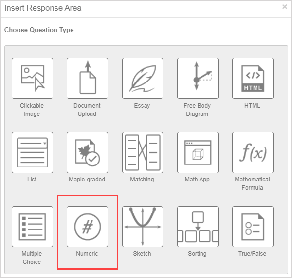 A numeric question compares a student's numerical response with a defined numerical answer.