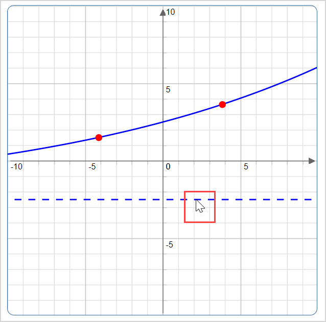 Click the location on the Sketch Board plotting area where you want to place the horizontal asymptote for the curve. A dashed horizontal line is automatically drawn through the point on the plotting area where you clicked.