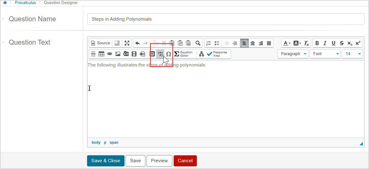 After inserting an invisible table using the Align Environment icon, text and media can be inputted into the individual cells of the invisible table and the content and table dimensions can be edited.