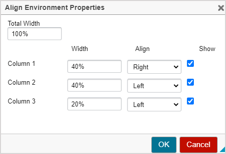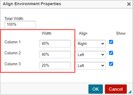 NOTE: Be sure to include a unit of measure in your total width entry. It's recommended to use percent (%) or pixels (px).