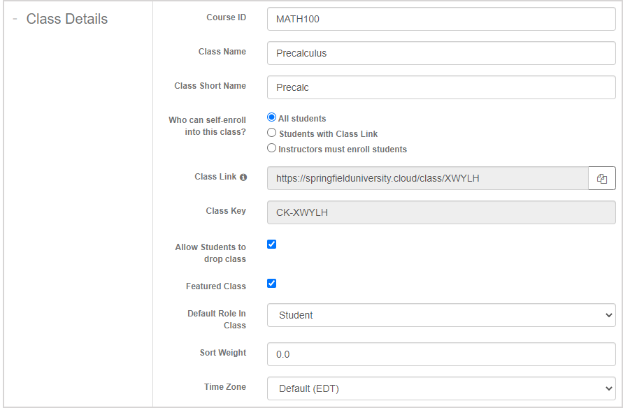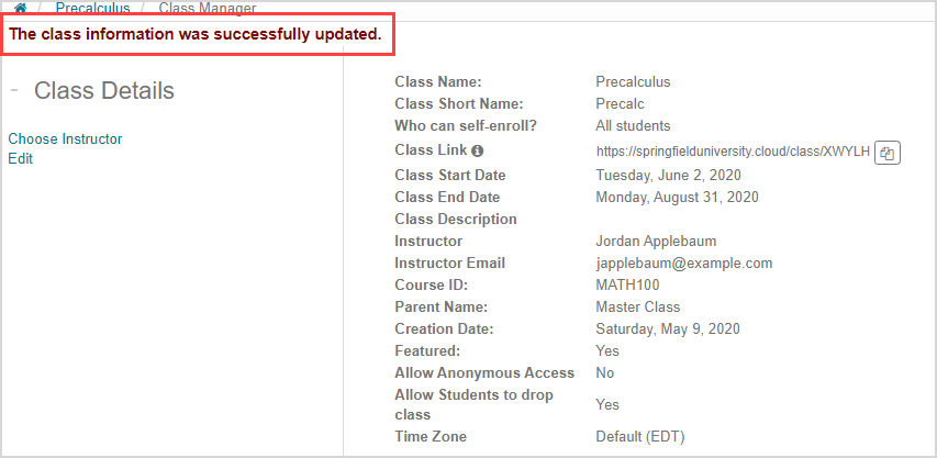 NOTE: The Class Link is visible as a read-only field. You can still click Copy Class Link to clipboard