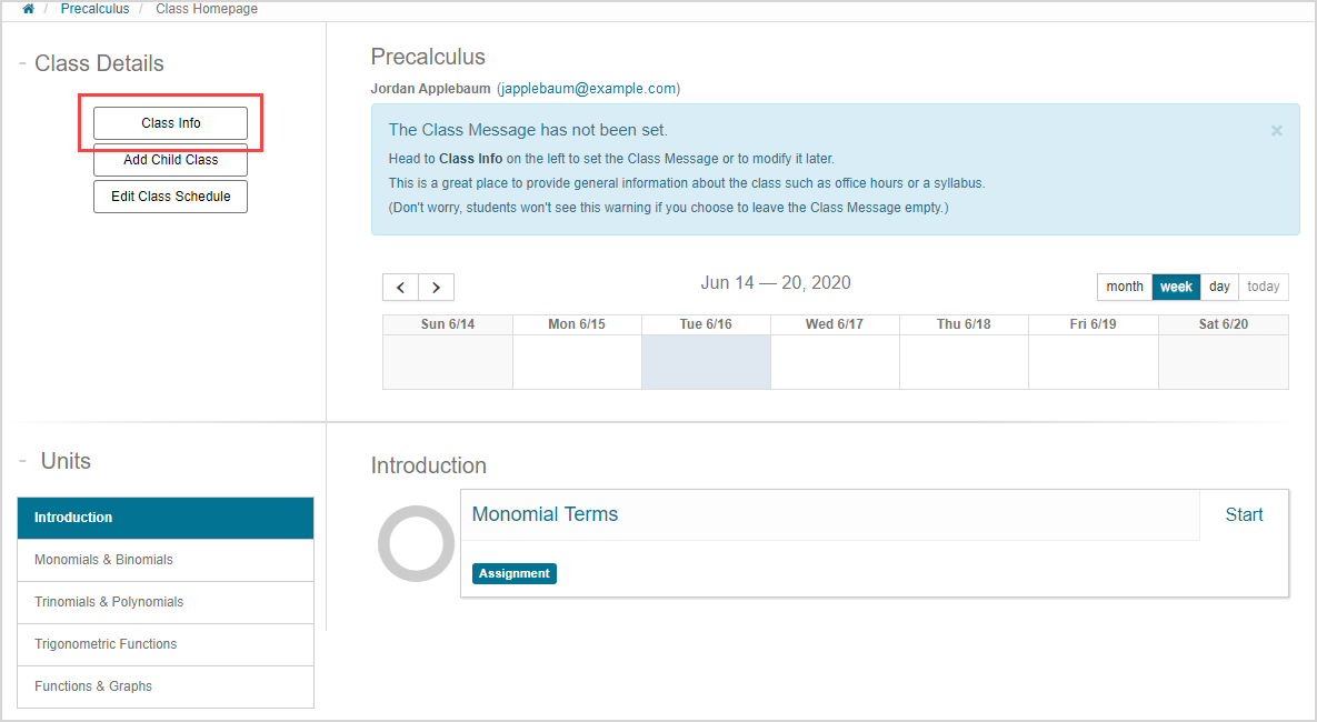 Enter a class message that will be displayed on the Class Homepage to provide general information to your students about your class.