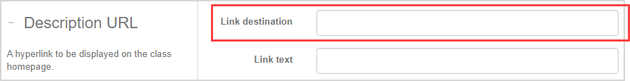 Define a description URL using a link destination URL if you want to provide your students with a supporting web page that will appear on the Class Homepage.