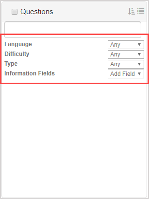 NOTE: If you're searching for a question, interactive narrative, Math App, or text from the respective content-type pane, you can perform a search using more specific parameters as well as a keyword (Example — expand the Questions pane to search for a question). These specific search parameters search the Content Repository using the details that you've defined for the content in the Content Summary pane (check out View the Content Summary pane):