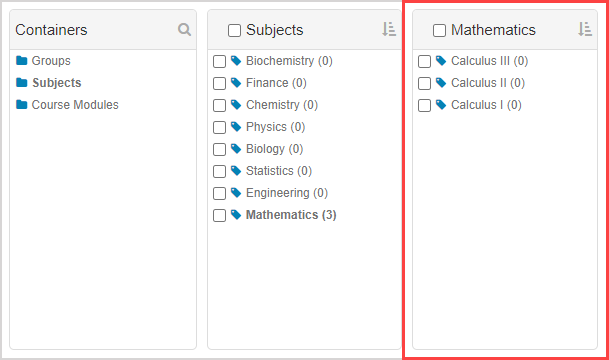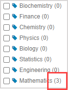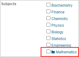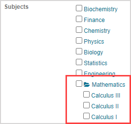 TIP: The number in parentheses beside the subject represents the number of nested child subjects (Example — Mathematics has three nested child subjects).