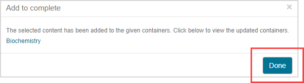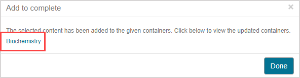 TIP: Alternatively, click Done to return to the Content Repository where you originally selected the content from.