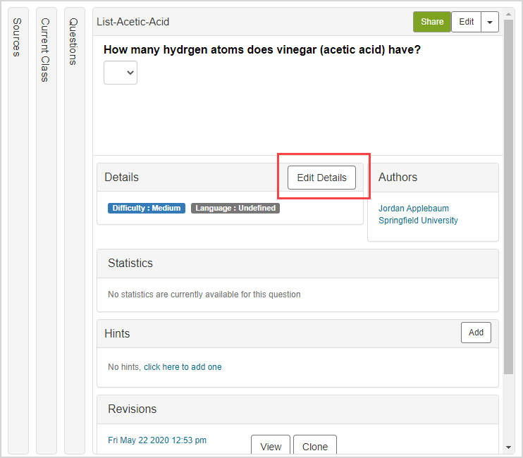 Navigate to the Content Summary pane of the piece of content that you want to associate with a subject and click Edit Details.