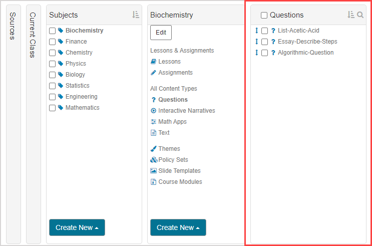 NOTE: Working with subjects in a child class? You'll first need to clone inherited content into your class before you can interact with its subjects. Check out Clone content.