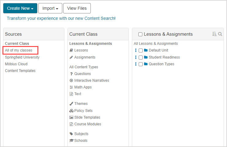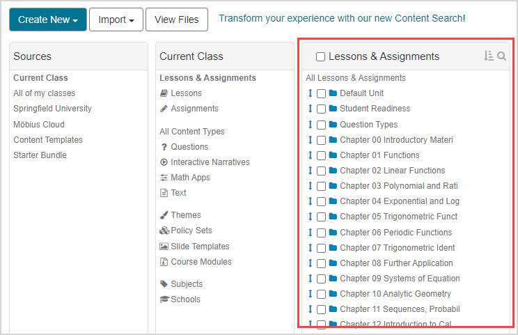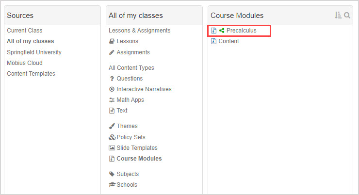 After you clone the Content Pack into your existing class, you'll be able to edit and reorganize its contents just as you would with any self-authored content for the class.