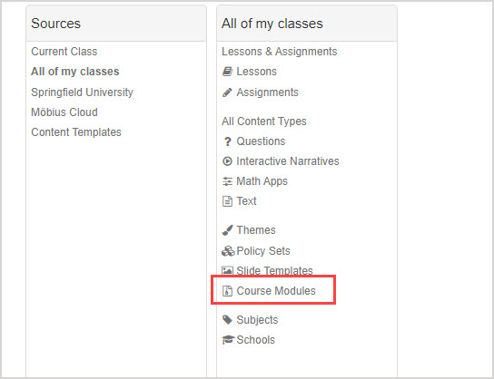 Any Content Packs you've purchased are loaded onto your Möbius site in their own featured class.