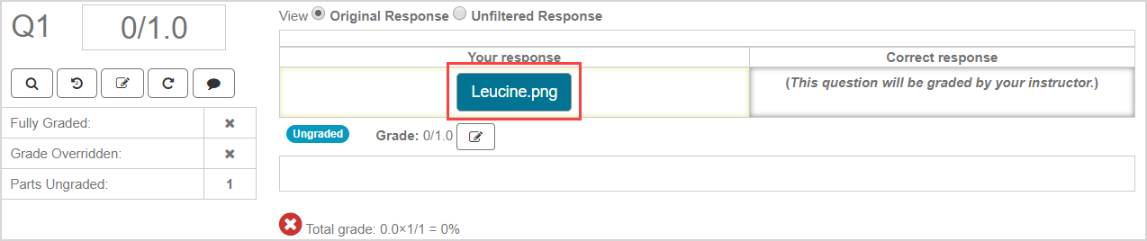 TIP: Alternatively, you can use the Activity Grading View of the Grade Manager to manually grade a student's response to a document upload question. Check out Access the Activity Grading View.