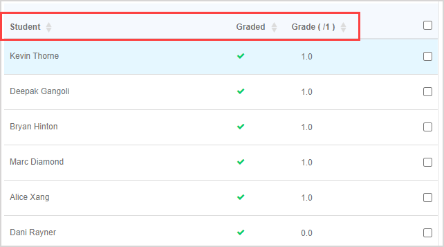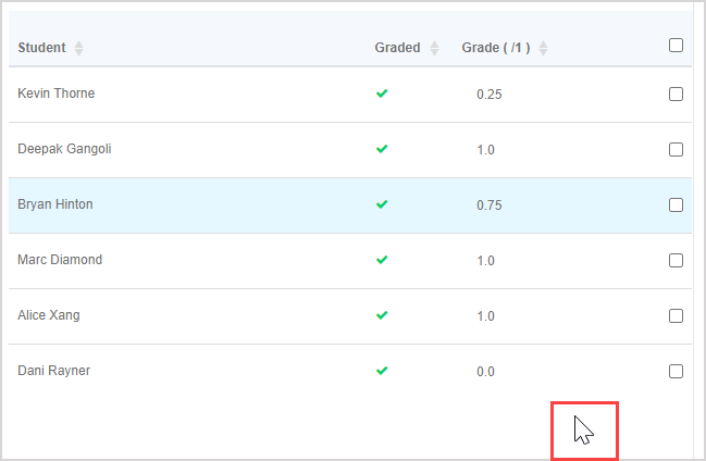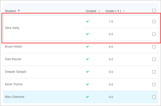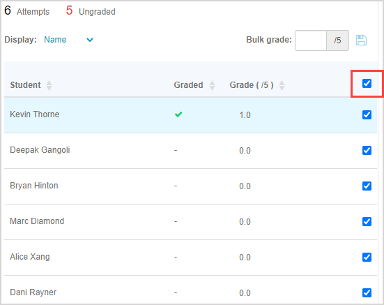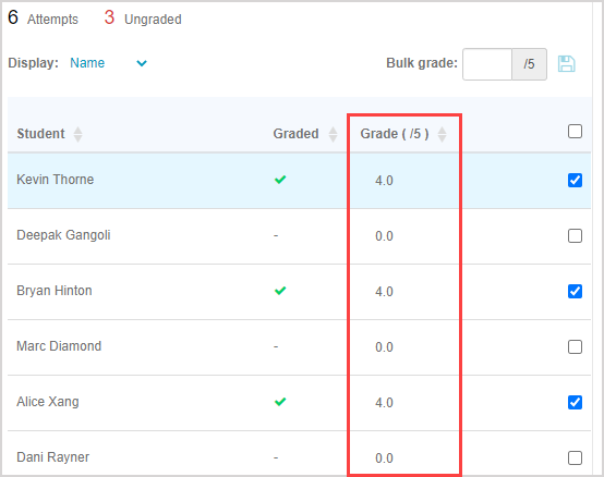 Select the student attempt check boxes for all attempts that you want to assign the bulk grade value to.