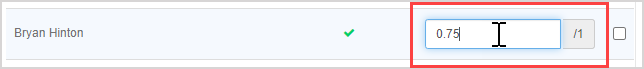 Hover your cursor over the student's grade value in the Grade column of the Selection pane to reveal the grade entry field.