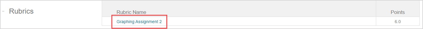TIP: Once the rubric table has been applied to an external activity, this linkage is displayed on the Class Homepage. A new Rubrics pane appears and displays the rubric table name and the total achievable points.