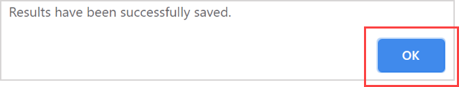 A success message appears that the student's results have been saved successfully. Click OK.