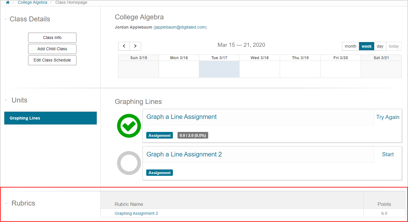 TIP: Once a rubric table is applied to an external activity, you're able to quickly access the external activity from the Class Homepage.