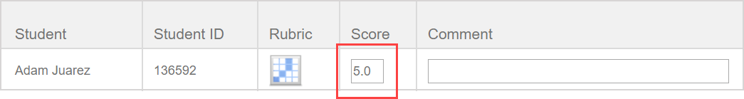 TIP: You can edit the Score field by clicking the preview rubric table icon