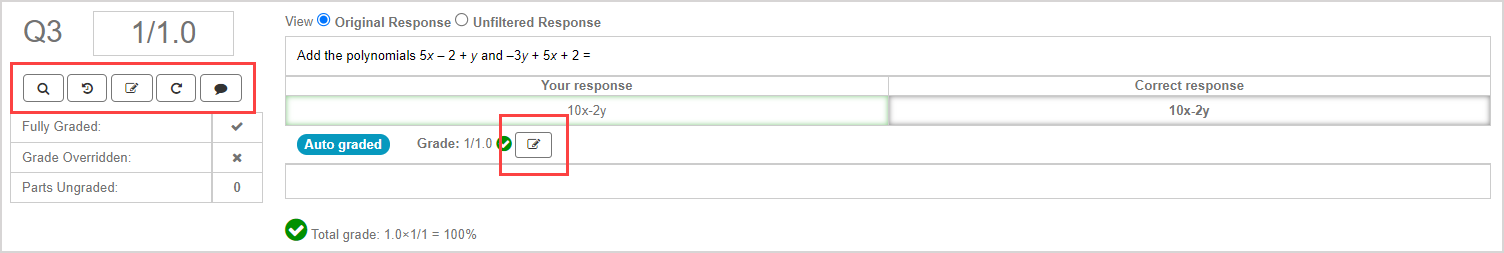 TIP: There are also a range of grading-related tasks beyond just viewing a student's response and grade that you can perform from a Question pane: