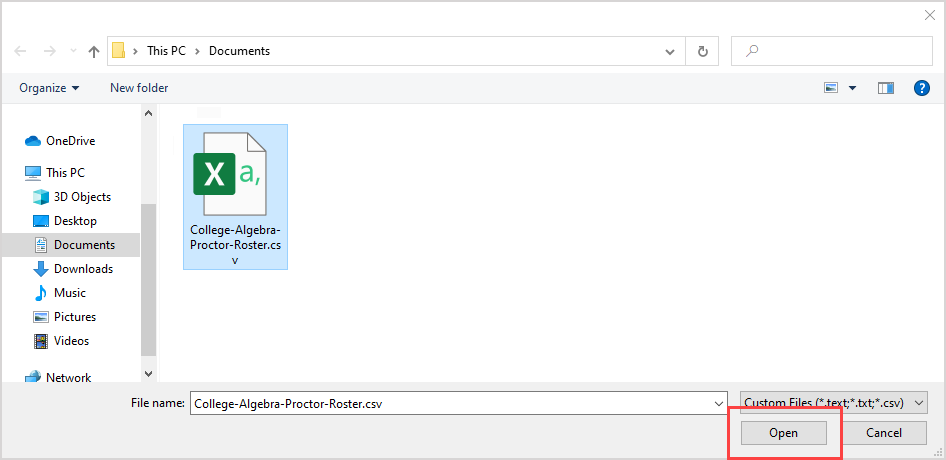 1.  Select the user roster file (.tsv or .csv) that's saved locally on your computer and click Open.