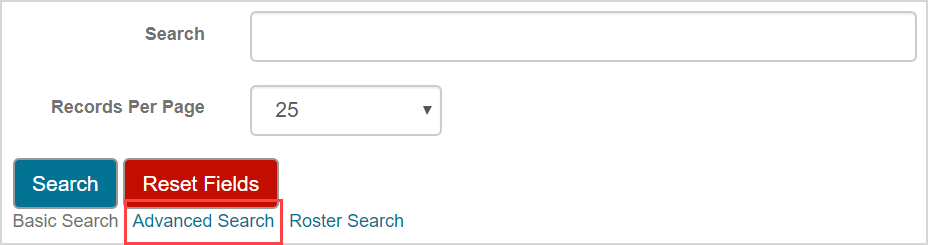 The Advanced Search link is below the Reset Fields button.
