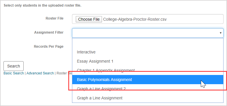 NOTE: Selecting an assignment name at this step will refine your student search results to only show the permissions that the students hold for the specified assignment. However, this is optional in the roster search since you can also select the desired assignment when you authorize permissions in later steps.