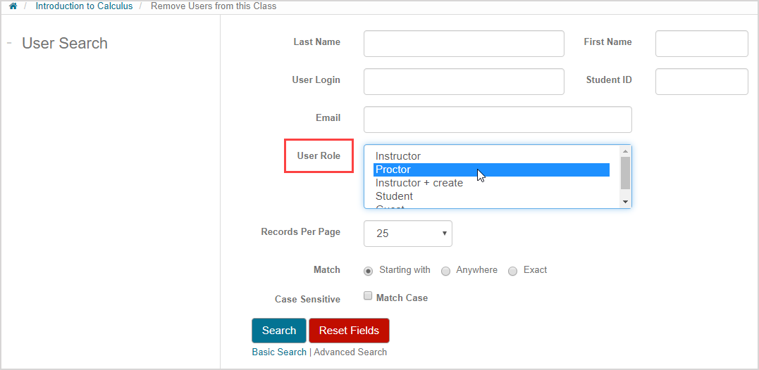 NOTE: When a proctor is removed (unenrolled) from a class, that user will no longer have proctoring privileges for that class.