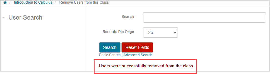 Perform a basic search or advanced search for the user(s) you want to remove from the class.
