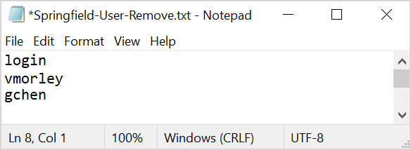NOTE:Login should be the only attribute in the user roster file that you're using to remove users. Check out Work with a user roster file for more help with user roster files.