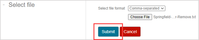Use the Select file format drop-down list in the Select file pane to select the type of file that your user roster file is saved as.