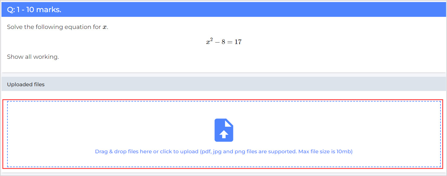 Upload files to answer the assessment questions (check out Upload files in a Möbius Grading assessment for more details).