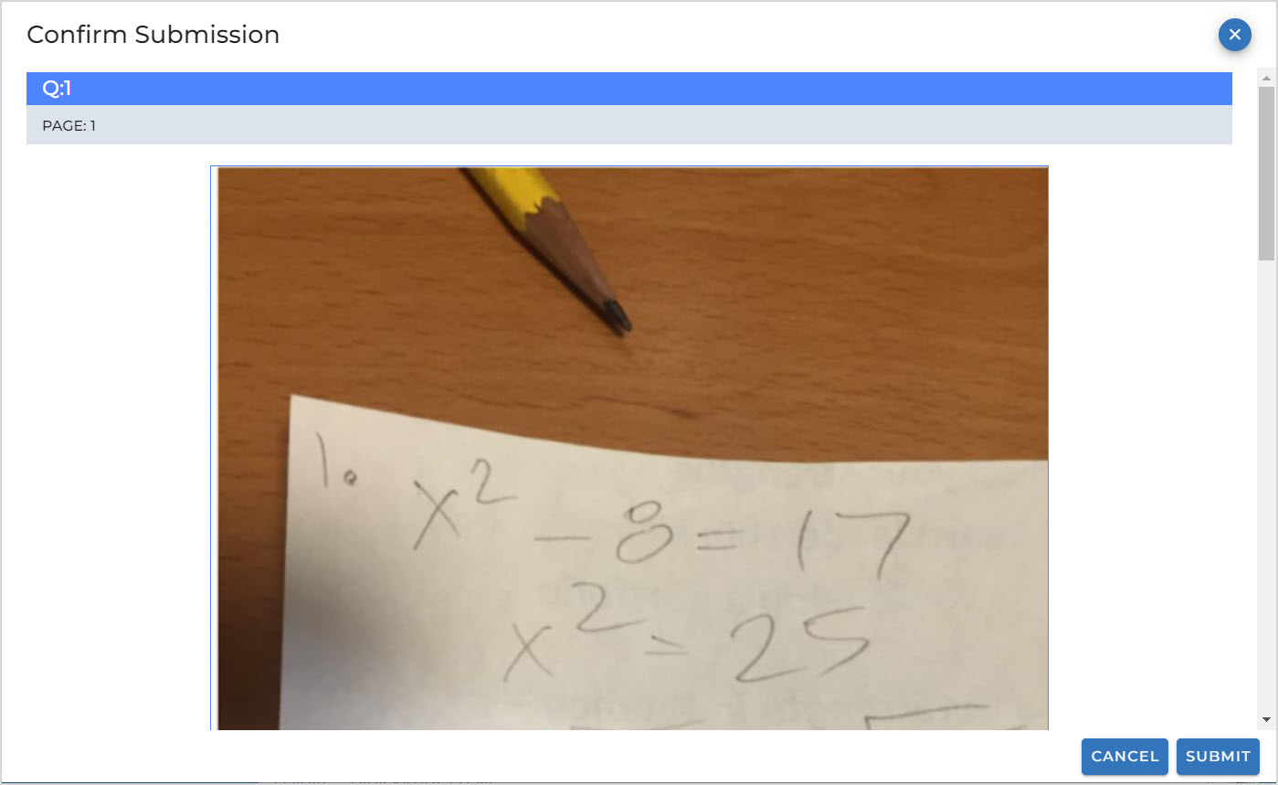 Check your submitted file(s) on the Confirm Submission screen, and ensure each file is uploaded to the correct question.