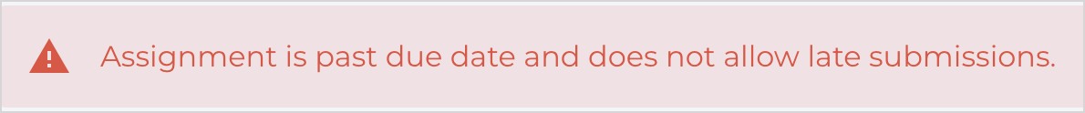If the due date has passed and late submissions aren't allowed, you'll see a error message and you won't be able to submit. If you had previously saved files, they were automatically submitted on the due date.