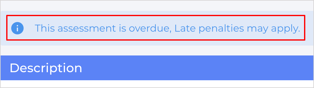 NOTE: If the due date has passed and late submissions are allowed, you'll see a message indicating that the assessment is overdue, and that late penalties may apply.
