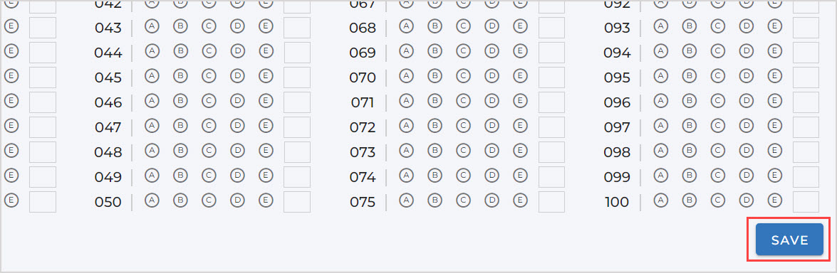 When you create an assessment, you can set up the assessment with multiple choice questions, and a bubblesheet for students to use when completing the exam.