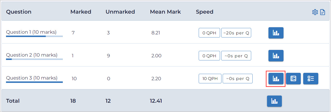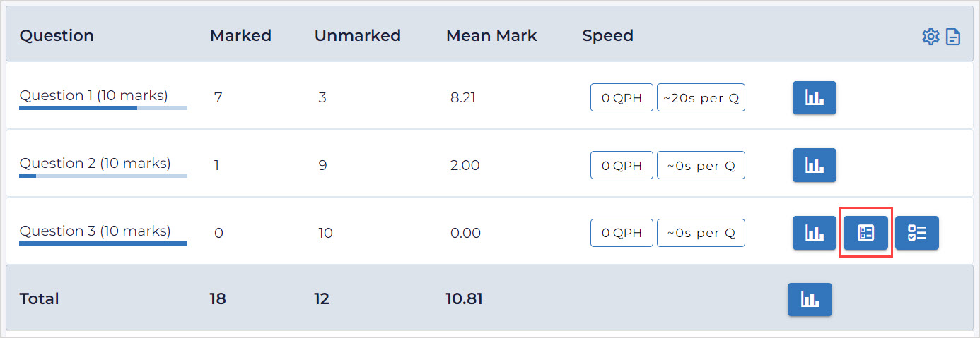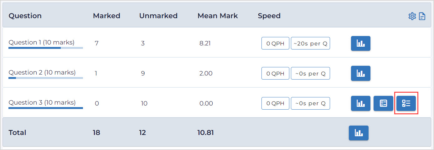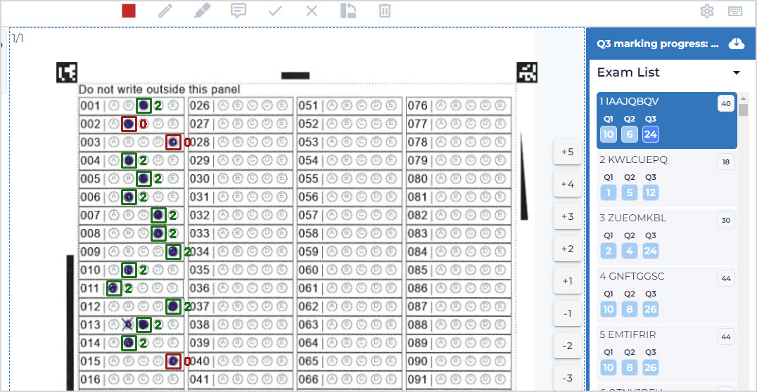 Open the grading interface (from the Marking option in the navigation menu) to view the completed scoring for bubblesheets and check students' grades.